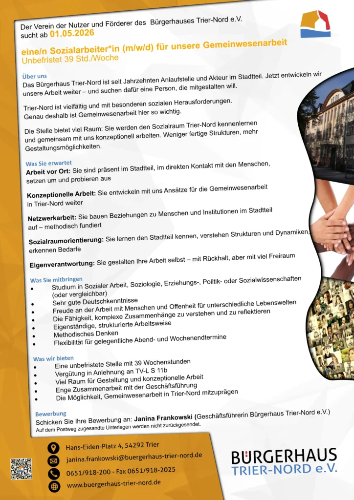 Bei Interesse oder Fragen gerne telefonisch melden oder einfach im ersten Stock des Bürgerhauses vorbeischauen.